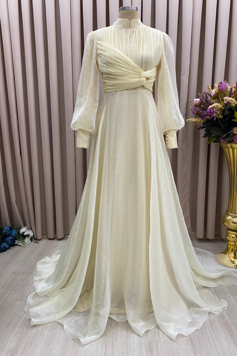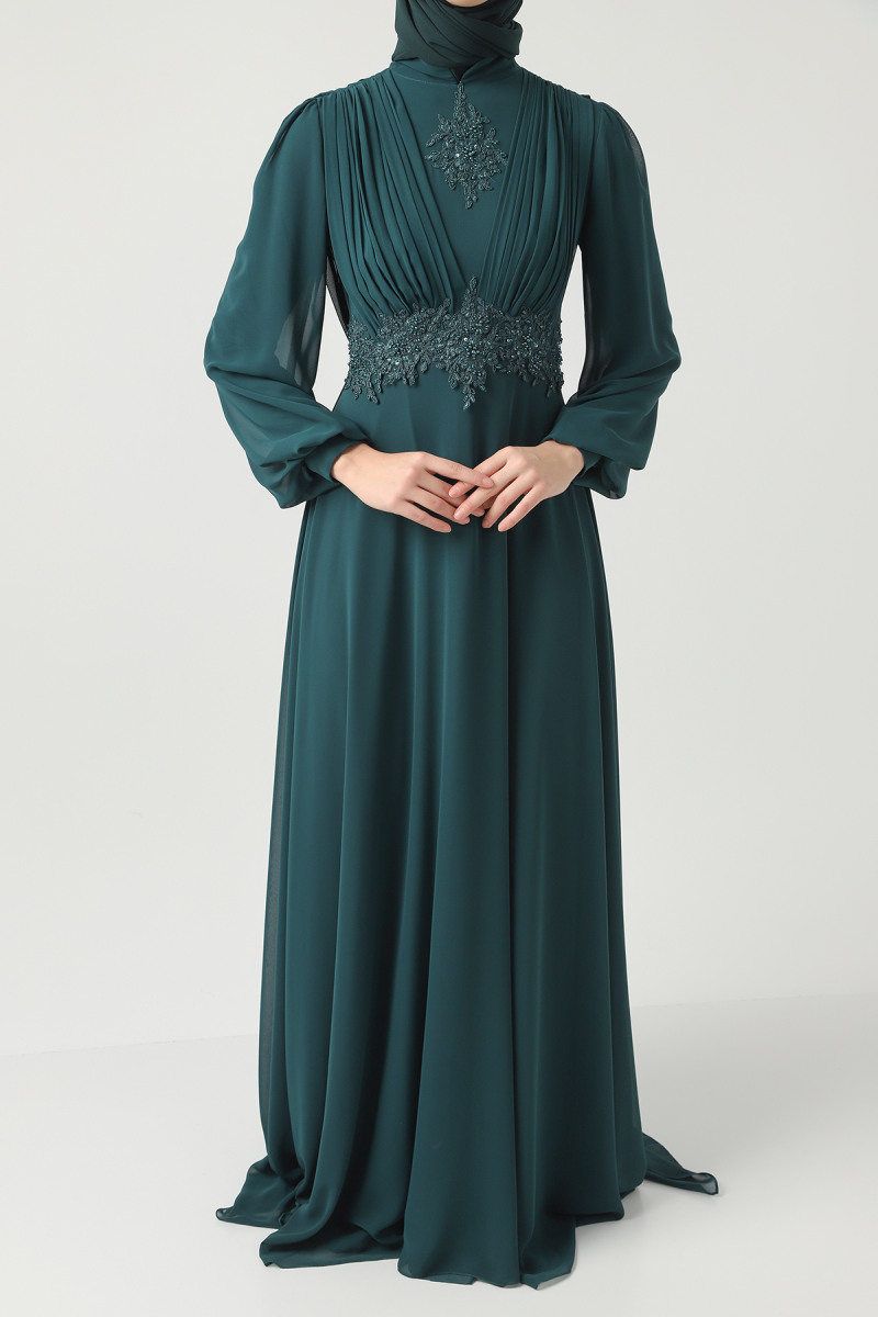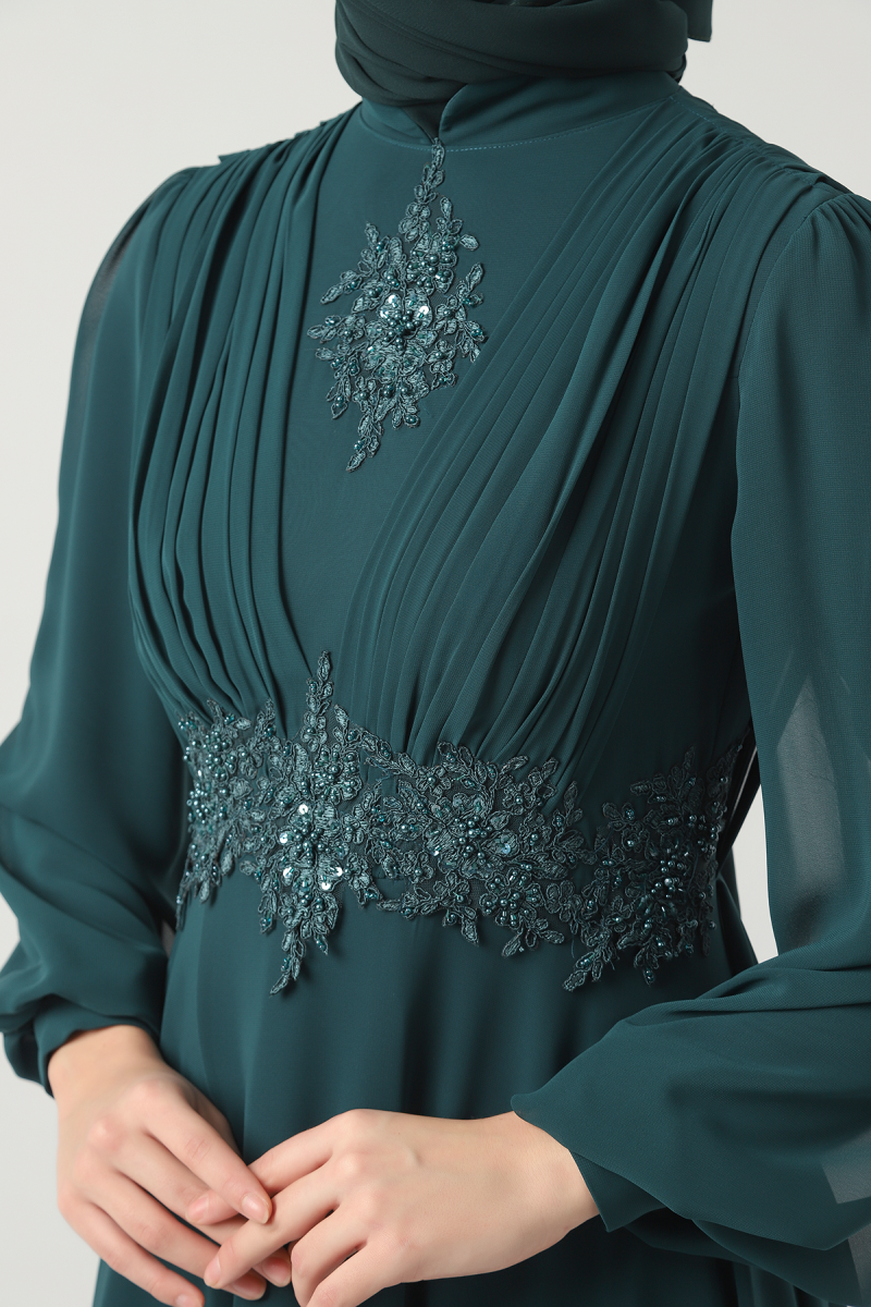 Dicle Abiye - Balon kollu , Göğüs ve Ben Pile Detaylı