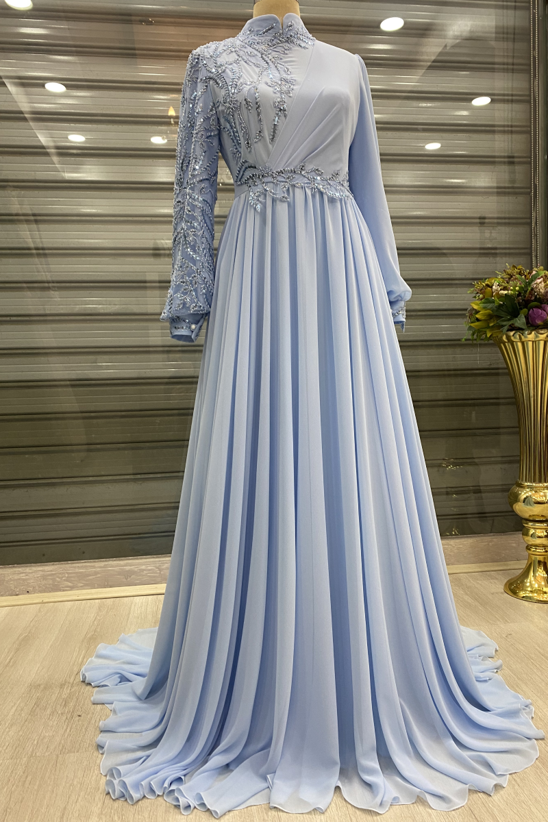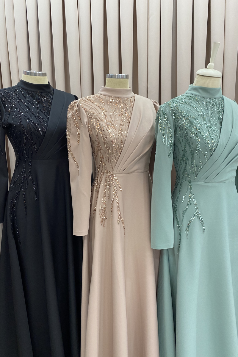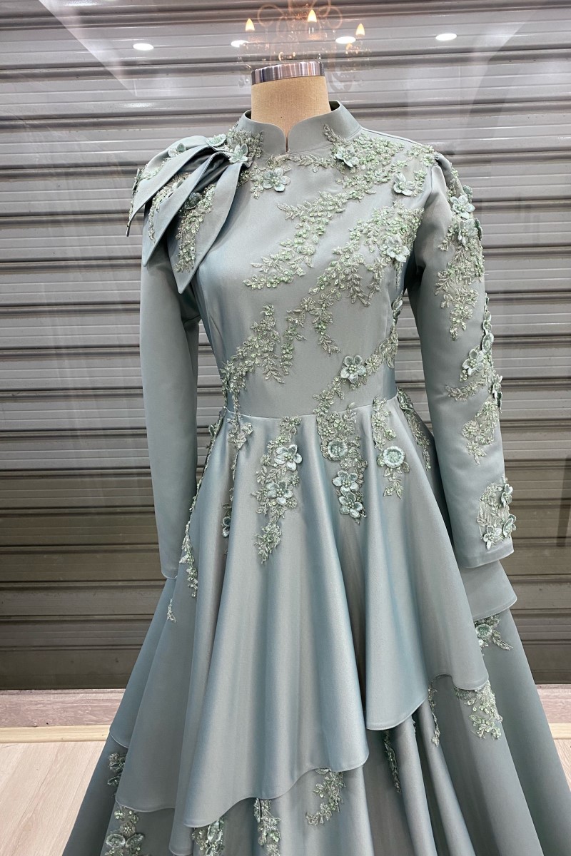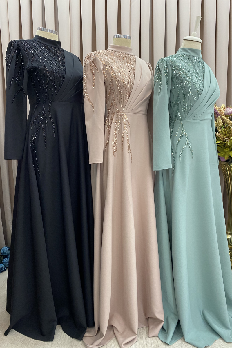 Dicle Abiye - Balon kollu , Göğüs ve Ben Pile Detaylı